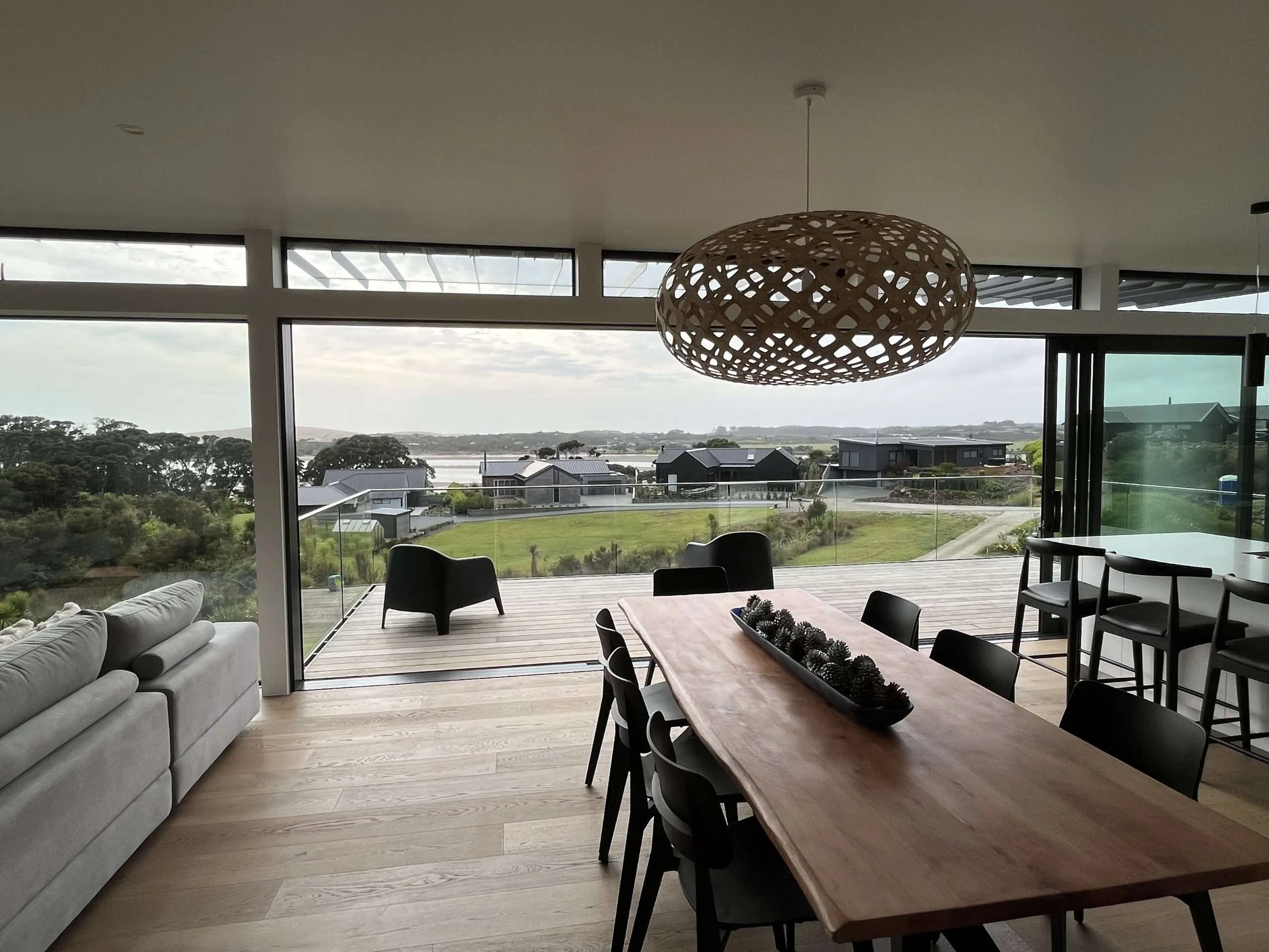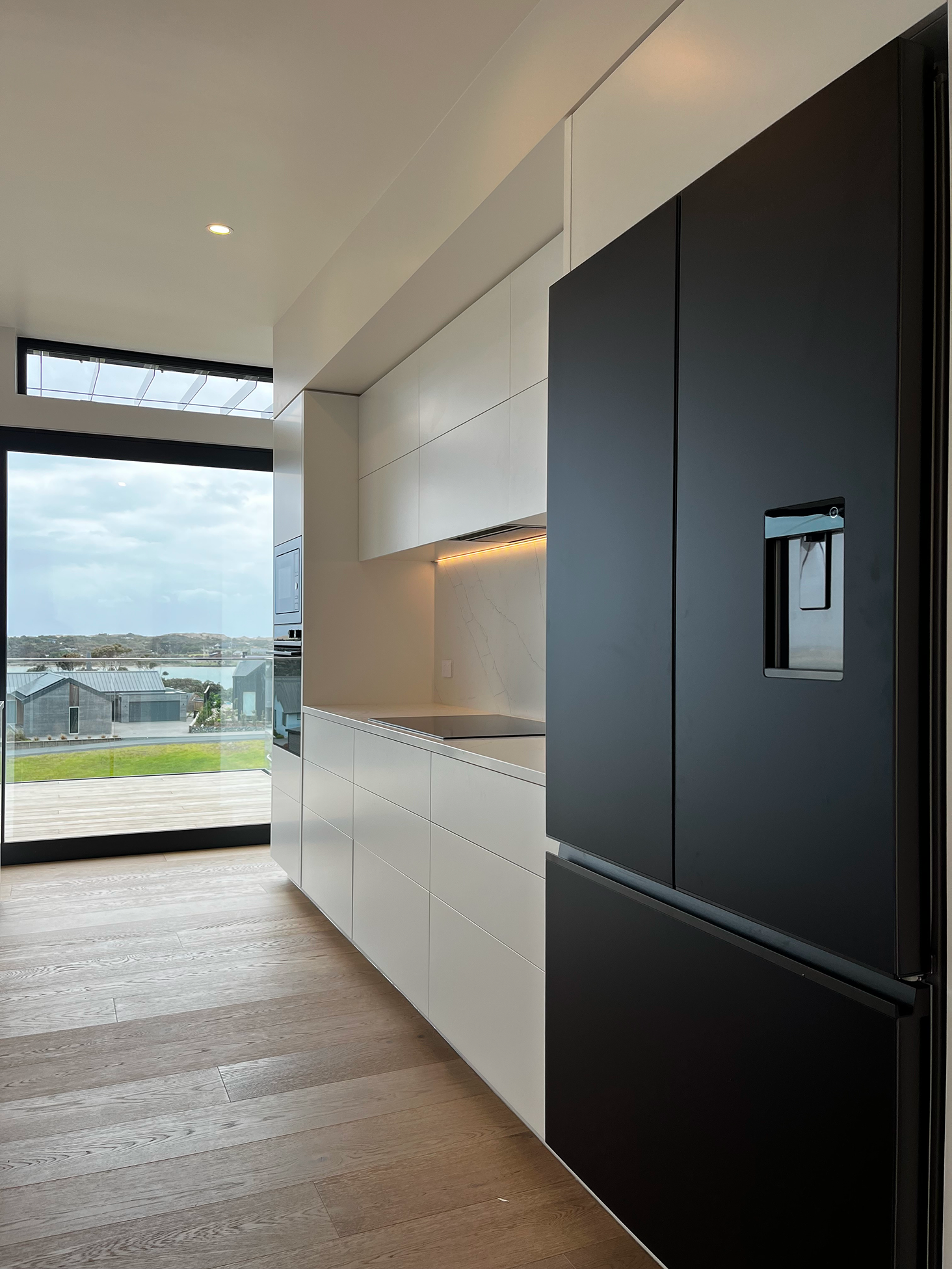 Estuary Drive is a contemporary architectural home in Mangawhai, carefully positioned to respond to coastal outlook, shelter, and connection to the landscape. A restrained form and durable material palette create a calm, low-profile presence within its environment, while expansive glazing and covered outdoor living extend the interior seamlessly into the surrounding terrain. Warm timber detailing, sheltered decking, and carefully composed interior spaces support relaxed everyday living and year-round entertaining, balancing durability with refined simplicity suited to the coastal setting. Thoughtfully detailed and precisely delivered, Estuary Drive reflects Green Build Projects’ approach to architectural construction across Mangawhai and Northland—realising composed, enduring homes through clarity of design, craftsmanship, and disciplined execution.