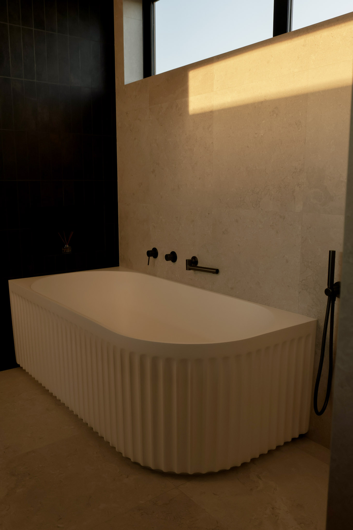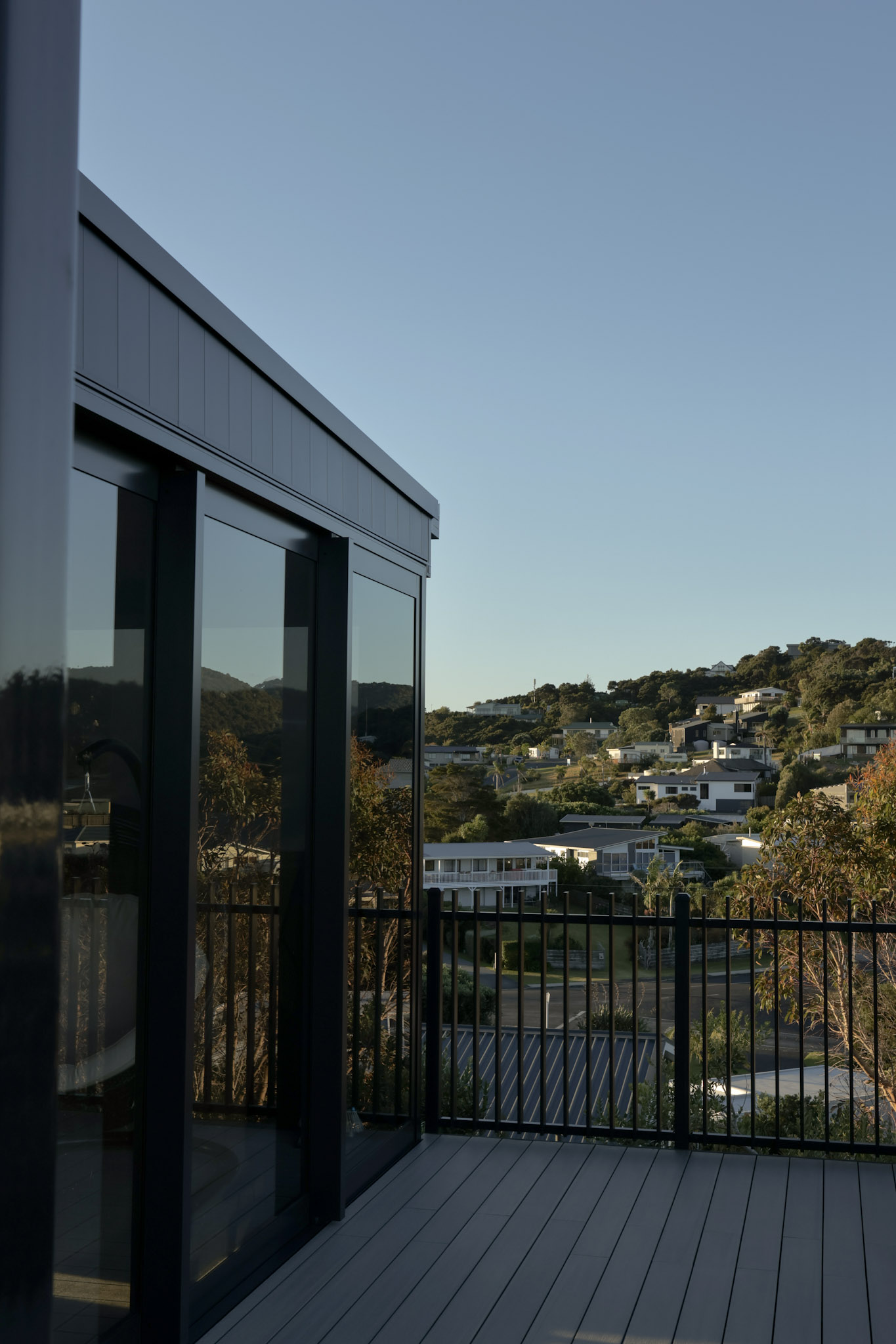 Set above the Mangawhai Estuary, this striking architectural residence was designed to make the most of its elevated coastal position while carefully navigating the challenges of a steep site. Designed by LTD Architects, the 413 m² home blends Nu-Wall aluminium cladding, Manor stone masonry and cedar detailing to create a contemporary coastal palette that is both refined and durable in the marine environment. Generous ceiling heights of up to 3.8 m and carefully integrated structural steel allow the interior spaces to open toward the expansive estuary views. Bespoke features throughout the home include a cedar-wrapped stairwell, a dedicated media room with built-in recliners, and lift access between levels. Over 300 m² of outdoor decks extend the living spaces outdoors, creating multiple entertaining areas that step down the hillside and connect the home to the surrounding landscape.